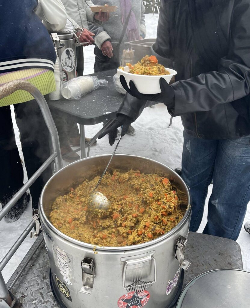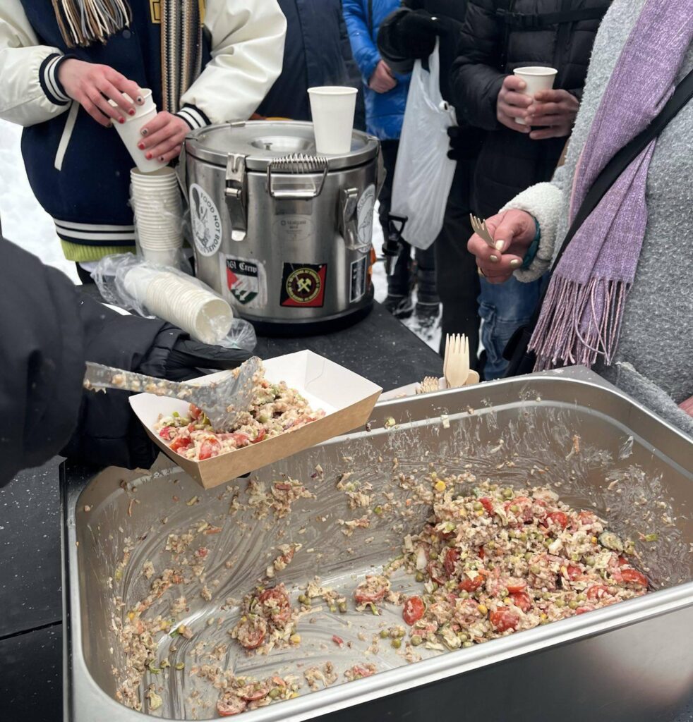 Zebraliśmy się dziś, aby ugotować wegański posiłek dla osób w kryzysie. Staraliśmy się, aby dziś wydawane jedzenie było rozgrzewające i sycące ze względu na mróz :))